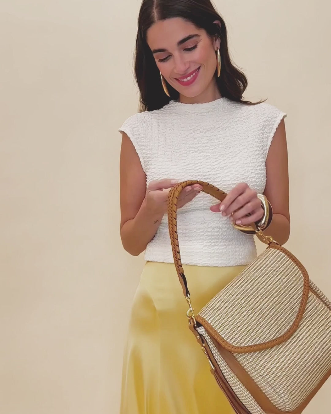 The All For Love Shoulder is your tactile twist on a classic shape. Featuring a woven raffia body contrasted with rich leather trim, this zip-top shoulder bag pairs structure with softness. Dual carrying options—arm, shoulder or crossbody—give you styling flexibility, while the zip closure keeps your essentials secure. It’s the perfect summer-to-fall transition piece: natural textures, elevated hardware, and timeless lines. Whether you're on the coast or cityside, this bag says relaxed elegance with a designer’s eye for detail. Meet our #1 selling bag from our All For Love Collection.